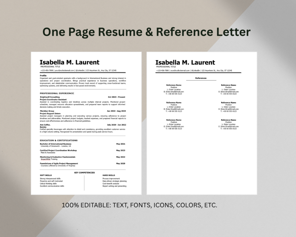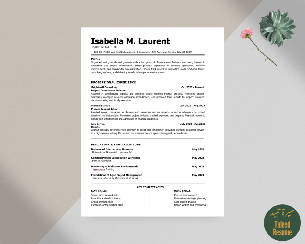 احصل على سيرة ذاتية كلاسيكية احترافية تعكس خبراتك في الأعمال، الإدارة، والتنسيق الوظيفي. يتميز هذا القالب بتصميم عصري ومنظّم يساعدك على عرض مؤهلاتك بكفاءة وسهولة، مع قابلية تعديل كاملة عبر Word — بدون أي خبرة تصميم.